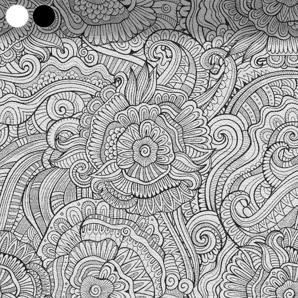 Der Teppich entfaltet seine Wirkung besonders eindrucksvoll im Wohnzimmer oder im Büro. Mit seinen filigranen, floralen Mustern schafft er eine ruhige und dennoch lebendige Atmosphäre. Die dominierende Schwarz-Weiß-Kombination ist modern und klar.