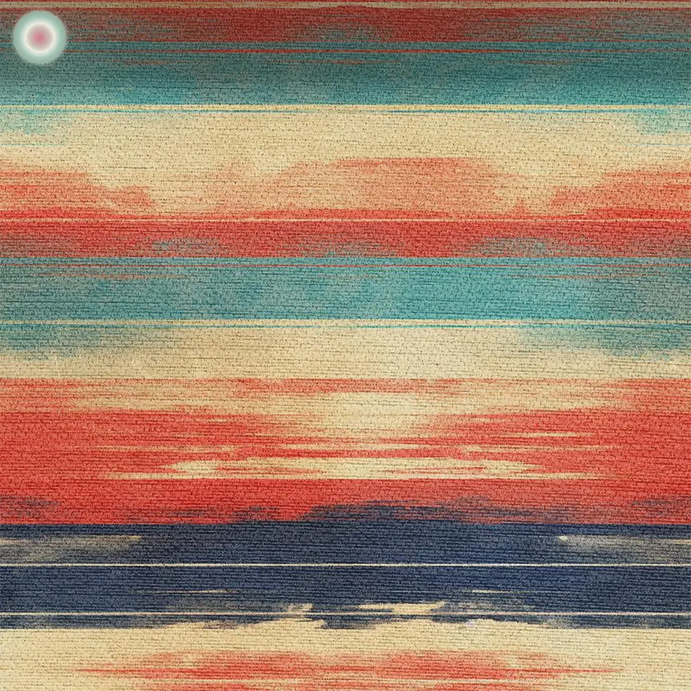 In your dining room, this pattern can create a feeling of warmth and down-to-earthness. The combination of blue, red, and wood tones creates an inviting atmosphere that fits wonderfully in the hallway or living room and conveys a calm, cozy mood.Its arrangement of colors is reminiscent of an orderly..