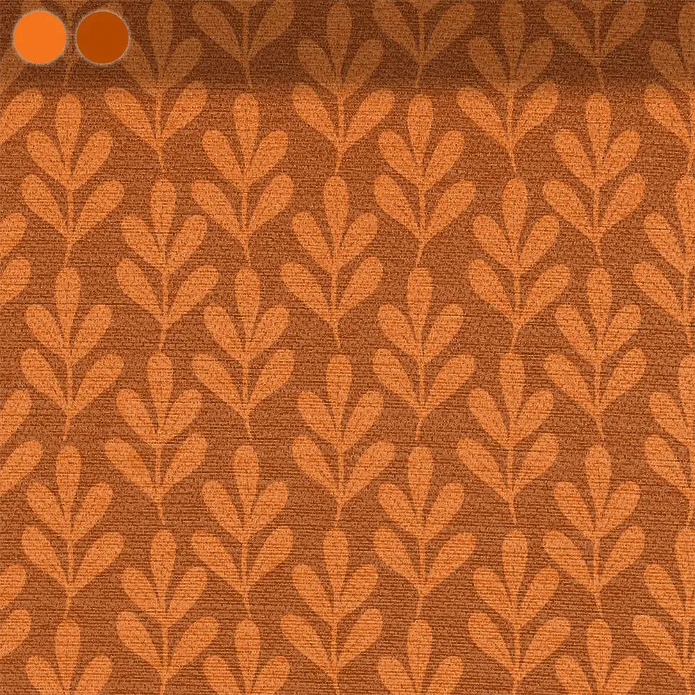 The design shows a harmonious leaf motif in a rich orange tone on a brown background, which creates a cosy atmosphere. As a discreet eye-catcher, it is a true enrichment for your room.