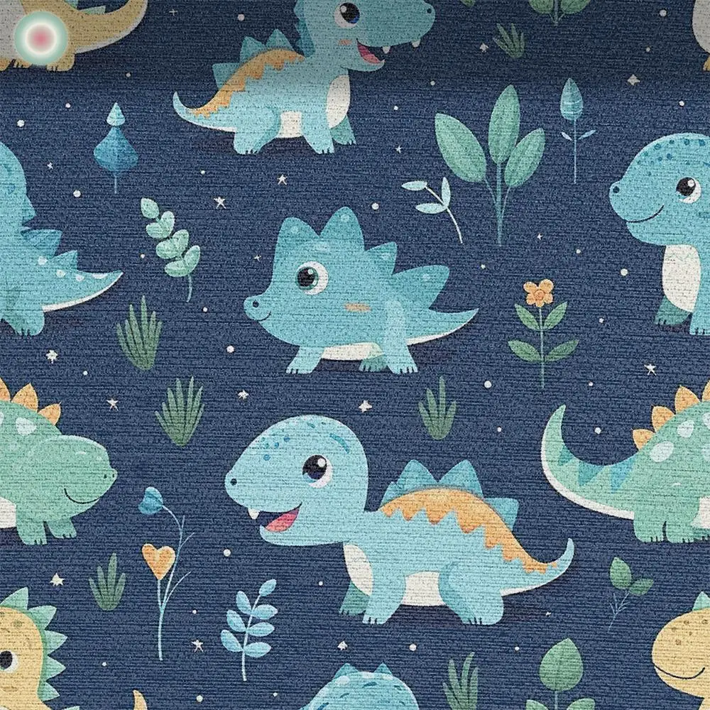The friendly dino motif immediately creates a casual, relaxed mood in a child's room. The colorful little dinosaurs in their blue tones look inviting and spread a light, playful atmosphere.