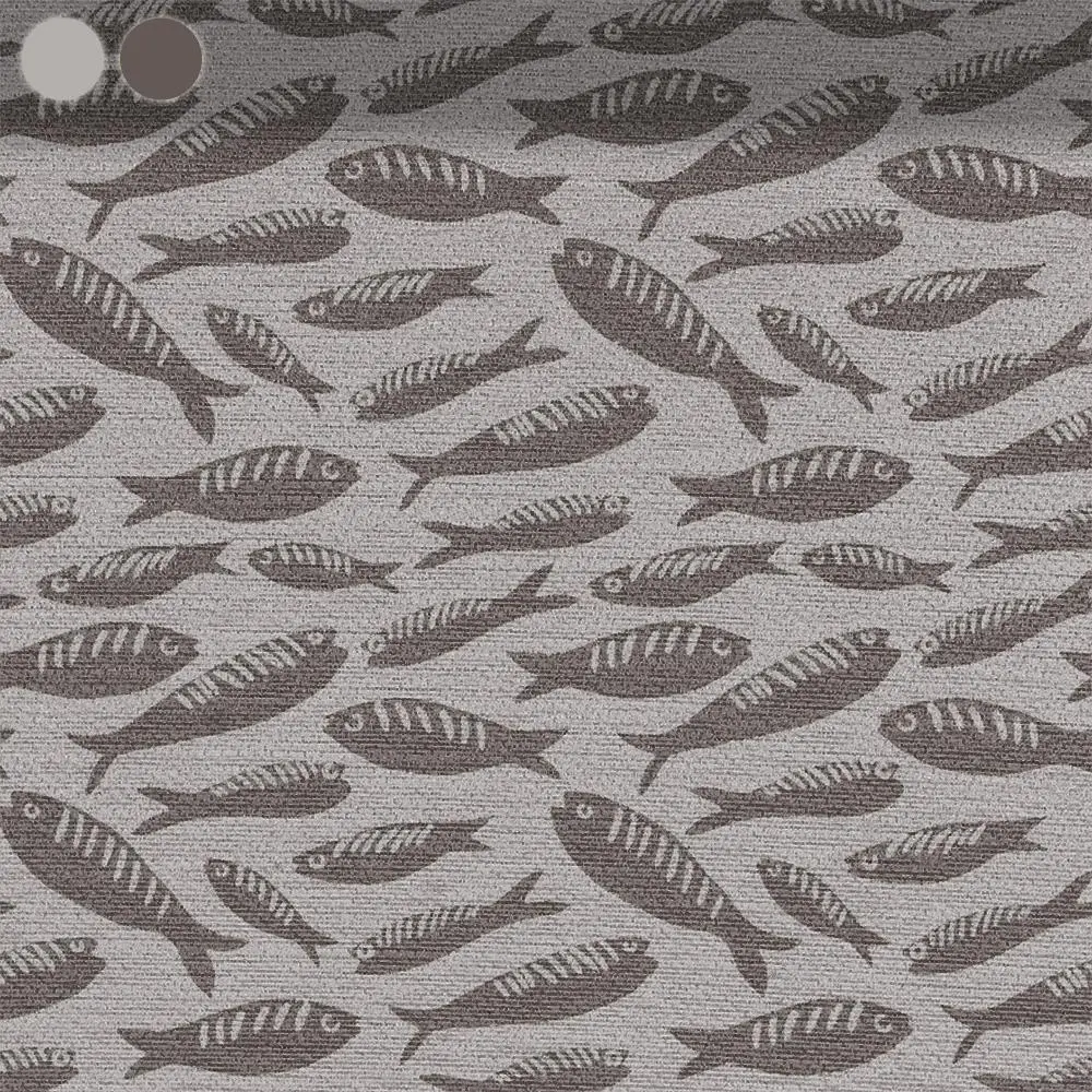 The brown-beige contrasts are discreet enough to keep the design reserved but stylish. The fish swim in a harmonious repetition that nevertheless appears lively and captures the image of a still, quiet ocean.