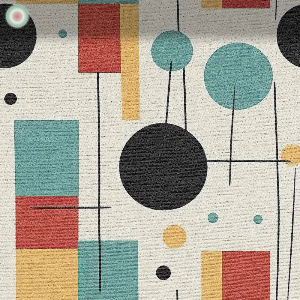 Clear shapes in blue, red, and beige create a graphic image with restrained tension. Round and angular surfaces meet and bring a modern lightness to the room. The design remains varied without becoming restless. A rug for the living room or office that combines clarity with an open, accessible style..