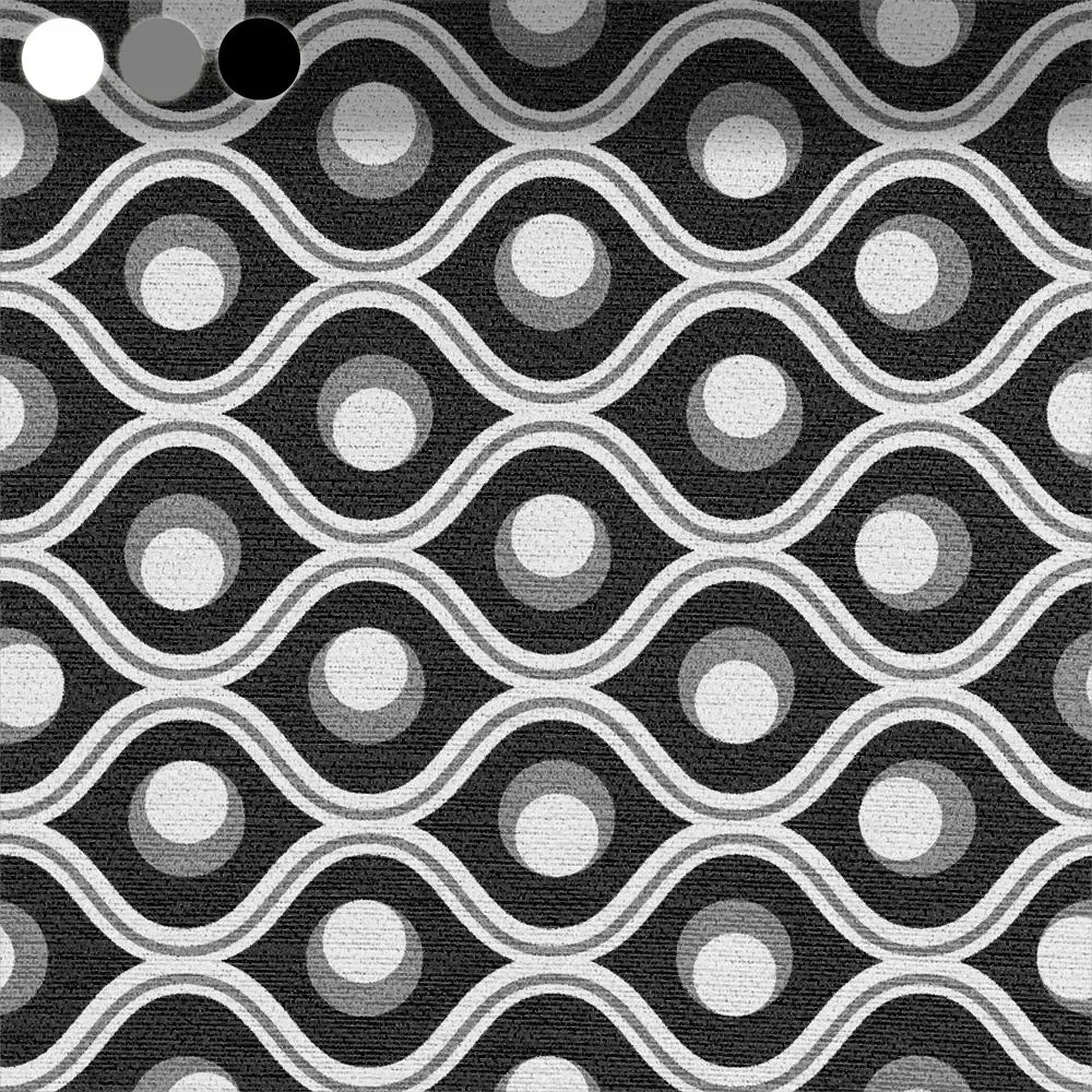 The wave-like lines guide the eye and the uniform circles convey a feeling of stability. It is a design that sets subtle accents in any room without being imposing.