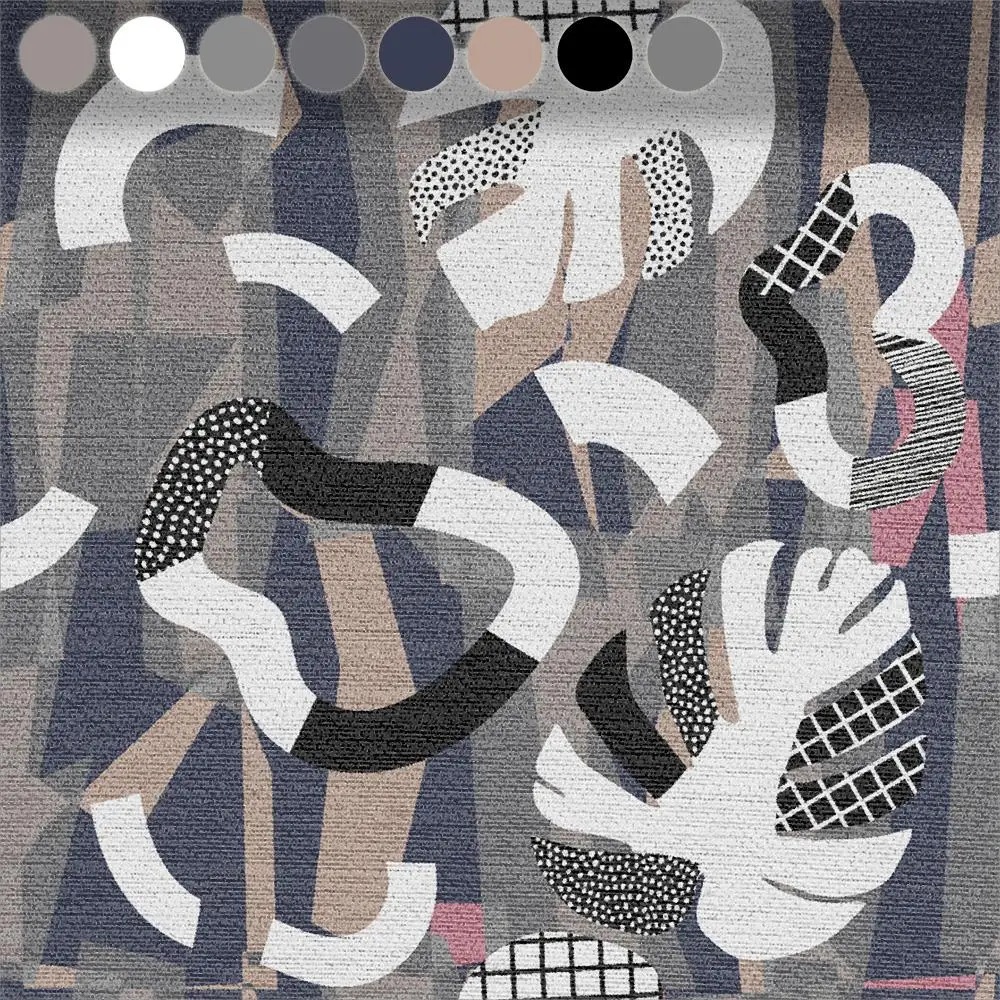 Discover the exclusive color palette of this design. Each individual one of the total 12 carpet colors was compared with physical reference color guides based on the printed colors and serves as an approximate orientation. You also get an overview of the percentage of each hue.