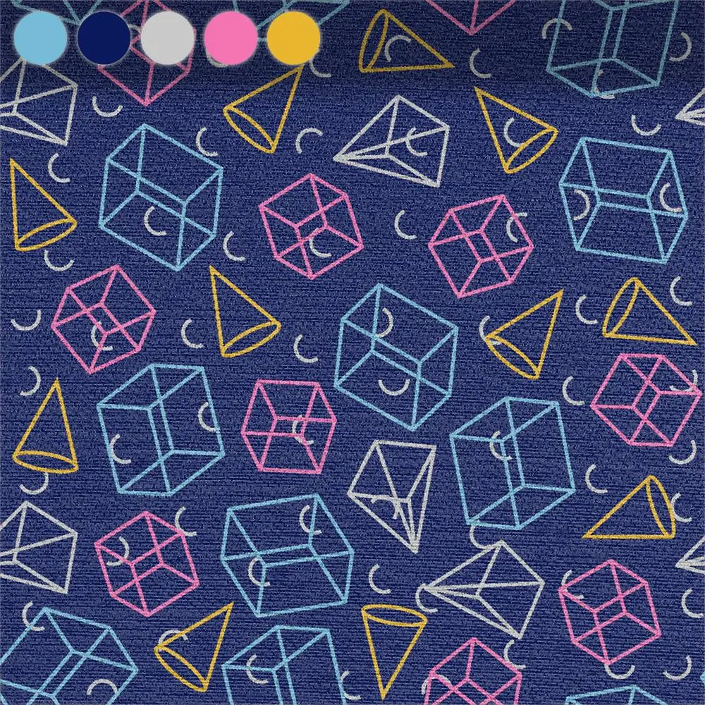 Imagine entering your office, and this rug immediately brings a good mood with its vibrant colors. The combination of pink, blue, and yellow creates a playful and creative atmosphere that fits perfectly in your study or kid's room.The graphic works with various shapes like circles, triangles, and sq..