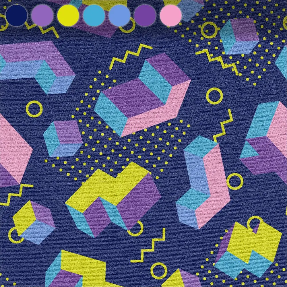 A fresh, cheerful eye-catcher for any room: the colorful, geometric patterns on a deep blue background give the kid's room or playroom a lively atmosphere. The combination of bright shapes and clean lines creates a dynamic mood that invites play and discovery.The graphic elements have a playful qual..