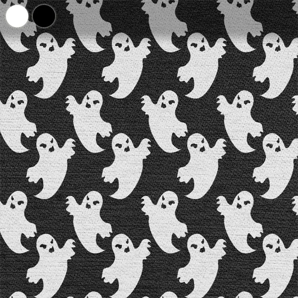 White ghost shapes on a deep black background give this rug a striking, almost mystical appeal. The clear contrast play is reminiscent of classic Halloween symbols, while remaining stylish and minimalist.